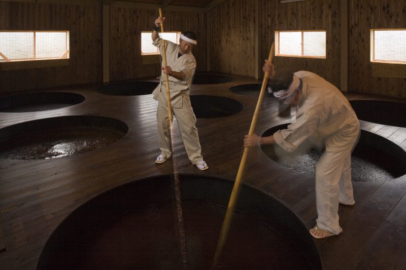 Za vreme fermentacije enzimi deluju na protein soje i pšenice, postepeno ih pretvarajući u amino kiseline. Skrob se pretvara u proste šećere, zatim fermentacijom u mlečnu kiselinu i alkohol. Po završetku procesa zrenja, smesa se pod pritiskom oslobađa tečnosti. Dobijena tečnost se pasterizuje da bi se uništile bakterije. I konačno, soja sos se pakuje u bočice.